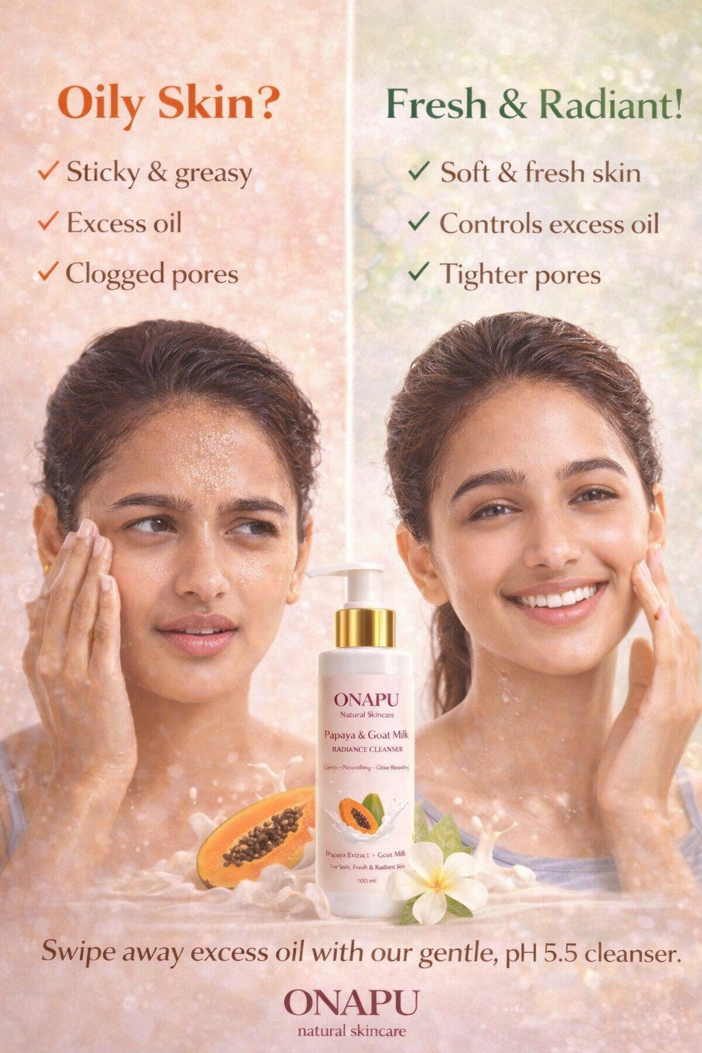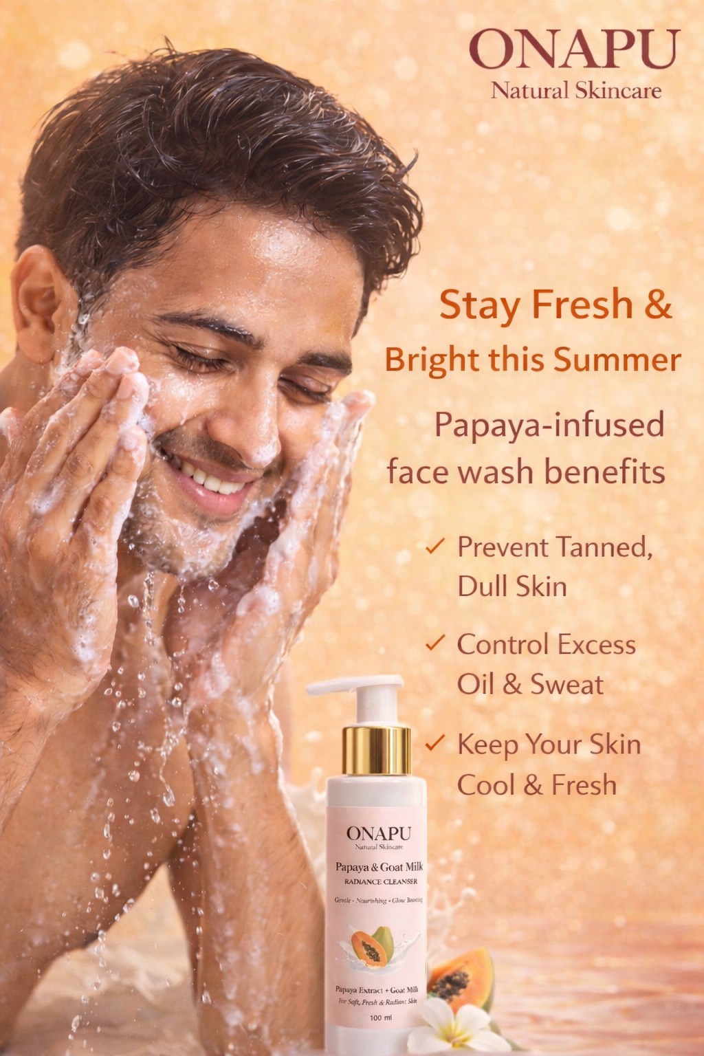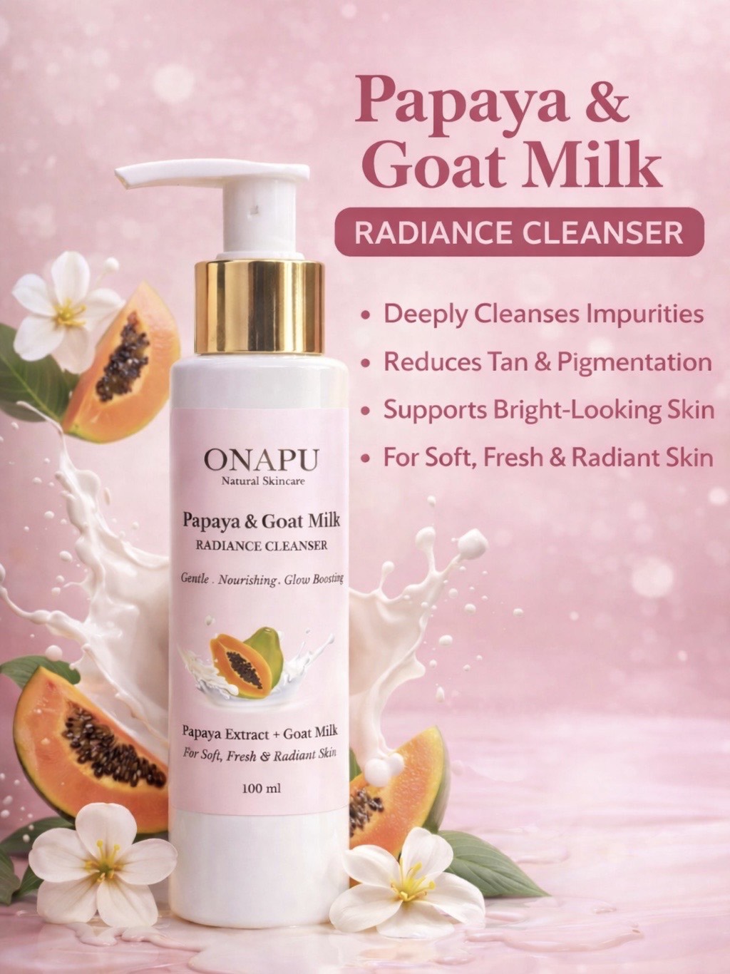 Papaya and Goat Milk Cleanser is a gentle facial cleanser that helps remove dirt, excess oil, and impurities while keeping the skin soft and nourished. Papaya helps refresh and brighten the skin, while goat milk provides natural hydration and helps maintain the skin’s moisture balance. This mild formula cleanses the skin without making it dry, leaving your face feeling smooth, fresh, and healthy.